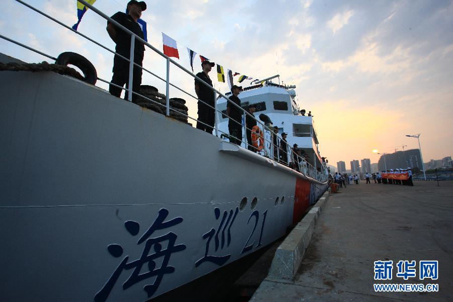 当日,海南海事局“海巡21”和“海巡1103”船舶编队从三亚起航开赴西沙,开展为期3天的西沙海域巡航执法行动,此次巡航主题是“保障航行安全,保护海洋环境,维护国家海洋权益”。巡航期间将有水上飞机参与,这是在西沙海域首次开展有水上飞机参与的海空联合巡航执法行动。新华社记者 郭求达 摄