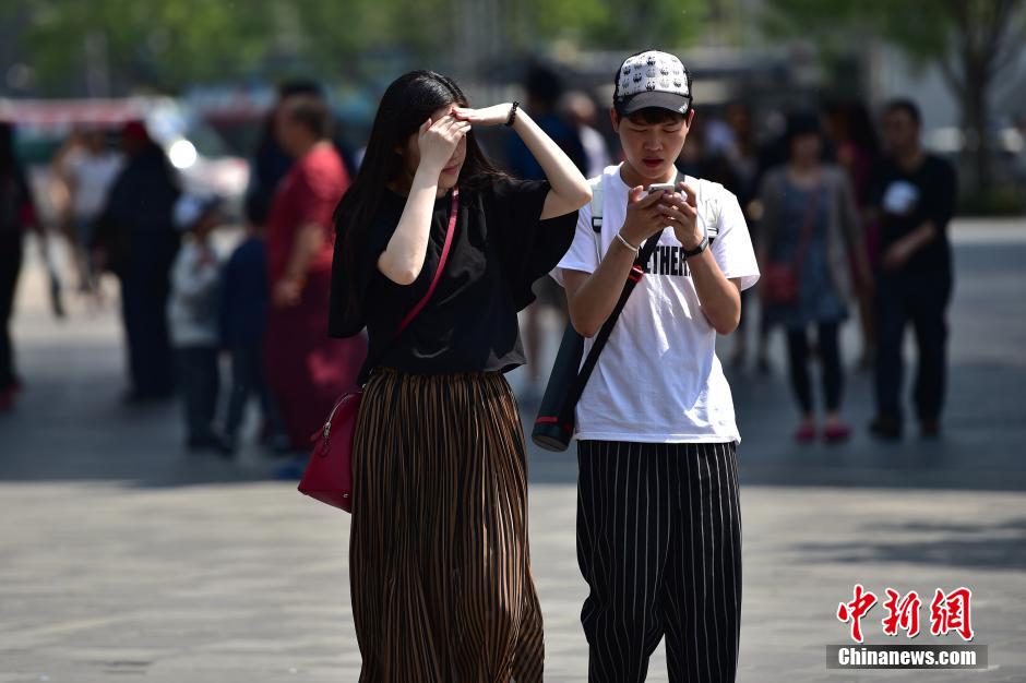 4月25日,暖气团继续发威,预计北京市最高气温可达到32℃左右,或创今年来气温的新高。据北京市气象台消息,当日本市晴间多云,大部分时间以晴为主。白天光照条件好,太阳能源充足,紫外线照射强度很强,气温继续一路走高,预计今天的最高气温可达到32℃,最低气温为11℃,京城似乎在一夜之间就来到了夏天。图为市民夏装出行。中新网记者 金硕 摄