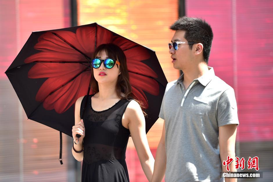 4月25日,暖气团继续发威,预计北京市最高气温可达到32℃左右,或创今年来气温的新高。据北京市气象台消息,当日本市晴间多云,大部分时间以晴为主。白天光照条件好,太阳能源充足,紫外线照射强度很强,气温继续一路走高,预计今天的最高气温可达到32℃,最低气温为11℃,京城似乎在一夜之间就来到了夏天。图为市民夏装出行。中新网记者 金硕 摄