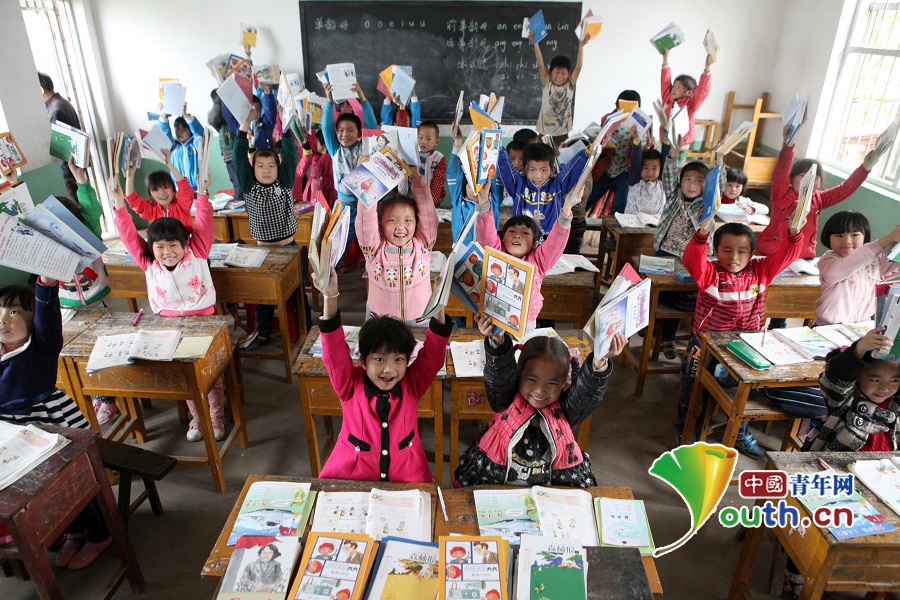 我们终于有了自己喜欢的课外书哦!邓家村小的小朋友们一起欢呼雀跃。
