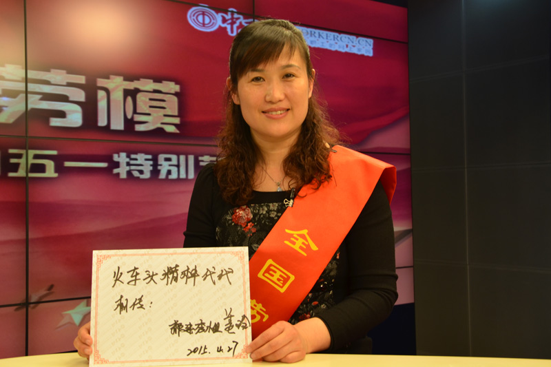 全国劳动模范、青岛齐意纺织公司“郝建秀小组”组长姜玲。 中工网记者 笑语摄
