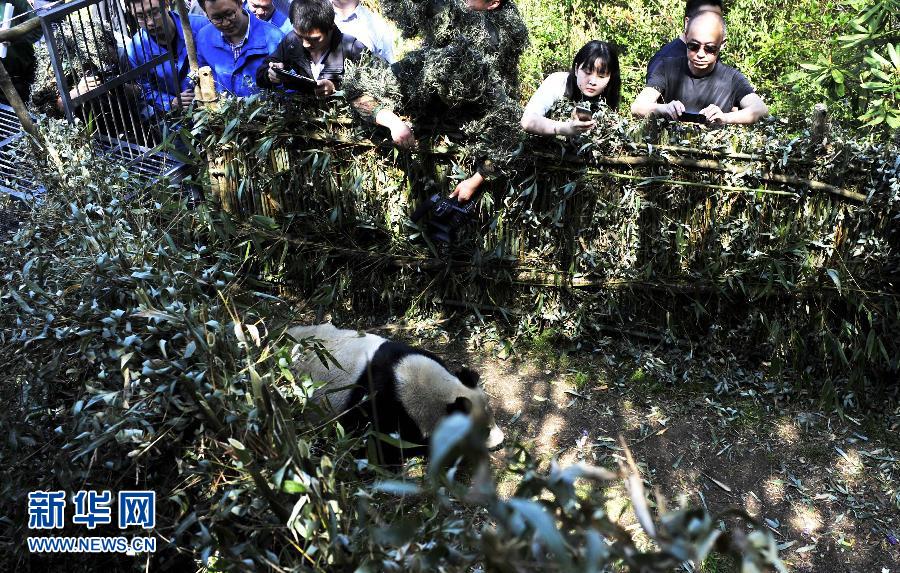 4月29日,大熊猫“卧龙二号”在四川卧龙自然保护区天台山被放归自然。当日,从野外救护并恢复健康的野生大熊猫“卧龙二号”在四川省卧龙国家级自然保护区耿达镇天台山被放归自然。 “卧龙二号”是3月17日在卧龙自然保护区耿达镇二村附近被救护的,当时它处于病饿状态。通过1个多月的精心治疗和护理,大熊猫身体恢复良好。4月24日,经专家论证,“卧龙二号”已经恢复健康,按国家规定可就近放归自然,回到野外种群。新华社发
