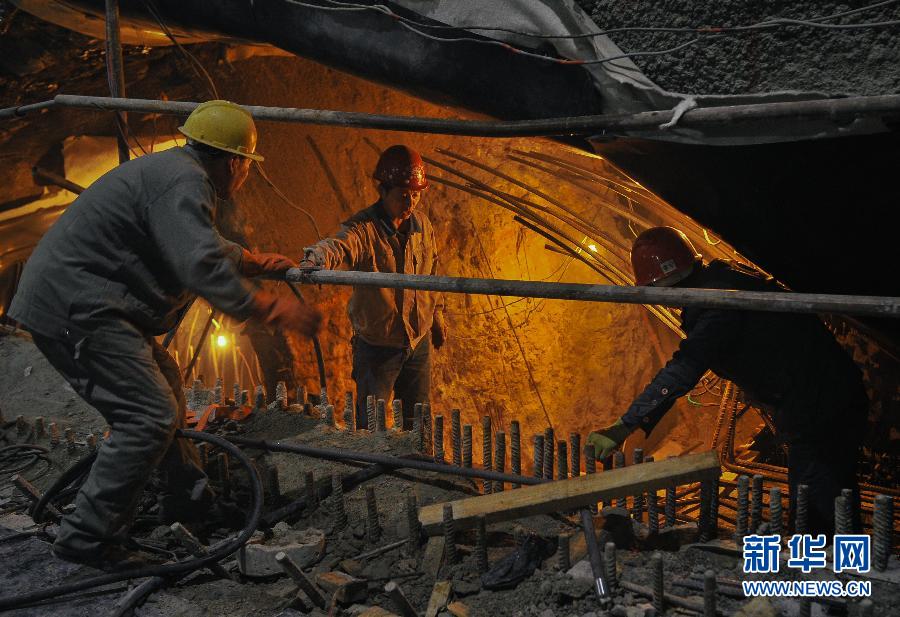 4月29日,工人在中铁十八局负责的长春地铁07标段施工现场作业。他们常年坚守在阳光无法照射到的地下作业,为建设更加便捷、高效、立体的城市交通网络默默奉献。 新华社记者 许畅 摄
