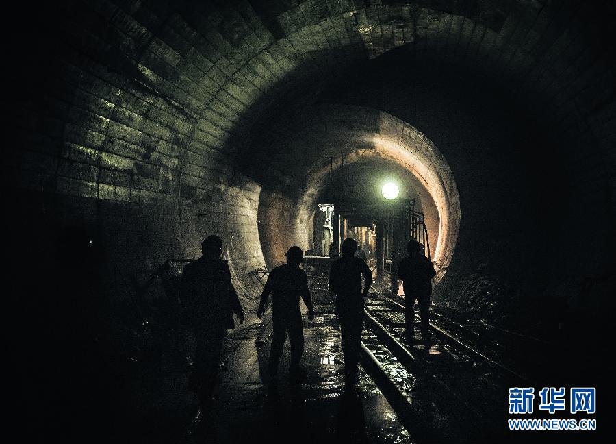 4月29日,在中铁十八局负责的长春地铁07标段,几名工人行进在地铁1号线隧道内。他们常年坚守在阳光无法照射到的地下作业,为建设更加便捷、高效、立体的城市交通网络默默奉献。 新华社记者 许畅 摄