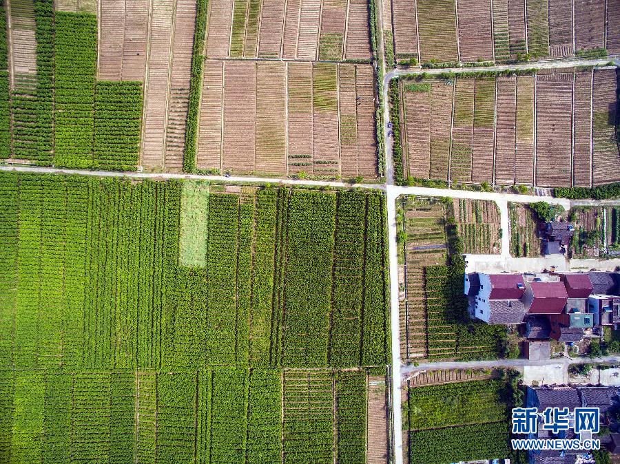 桐乡市西牛桥村的大片土地被绿油油的桑树覆盖,即将进入桑蚕养殖的忙碌季节(5月3日摄)。进入5月,浙江省桐乡市的大片农田被桑树覆盖,另外的耕地也种上了杭白菊等经济作物。从高空俯瞰,仿佛一片生机勃勃的绿色海洋。浙江省桐乡市自古就是我国蚕桑的重要产地,“桐乡蚕桑习俗”也被国务院列入第二批国家级非物质文化遗产名录。目前桐乡有桑树近10万亩,蚕种饲养量达到每年25万张左右。新华社记者 徐昱 摄