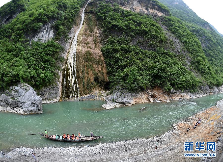 2015年5月3日 神农溪上的纤夫 游客坐在船上体验“纤夫”文化(4月30日摄)。新华社记者 肖艺九 摄