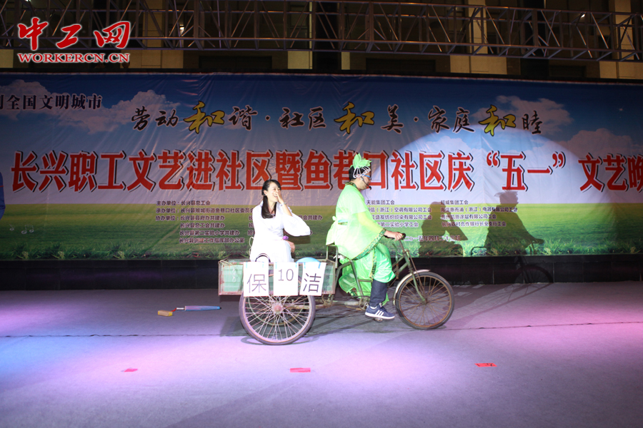五一假期前,由浙江长兴县总工会主办,鱼巷口社区承办,县政府、县国税局、县直机关、县第二实验小学、招商银行湖州长兴支行、县创建办协办的长兴职工文艺进社区暨鱼巷口社区庆“五一”文艺晚会在县文化馆露天舞台举行,天能、超威、海信空调、海信惠而浦电器、凯恩涂层、盛发纺织、县第二实验小学、长兴农村合作银行长业支行等工会选送的由职工自编自演的古筝、小品、戏曲、舞蹈和歌曲等节目高潮迭起,赢得了近千名观众的掌声、呐喊声不断,以此来喜迎全世界劳动人民的盛大节日——“五一”国际劳动节的到来。