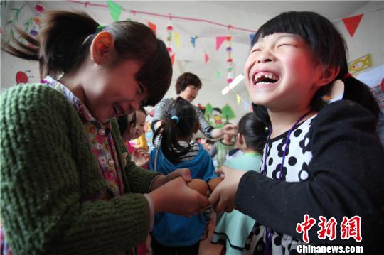 图为“斗蛋”现场。 董美巧 摄
