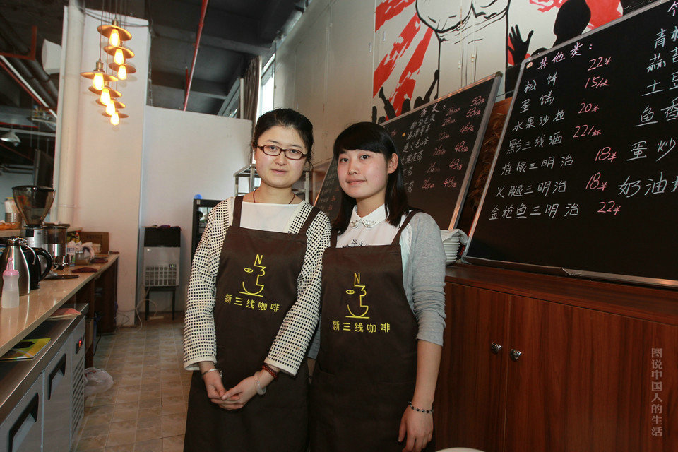咖啡吧由两个年轻的女店员打理。在这里,客人点一杯咖啡,便可免费享受一天的办公场地;如果项目够好,还能在咖啡吧里注册公司,甚至找到投资人,从而开始前景无限的创业之路。