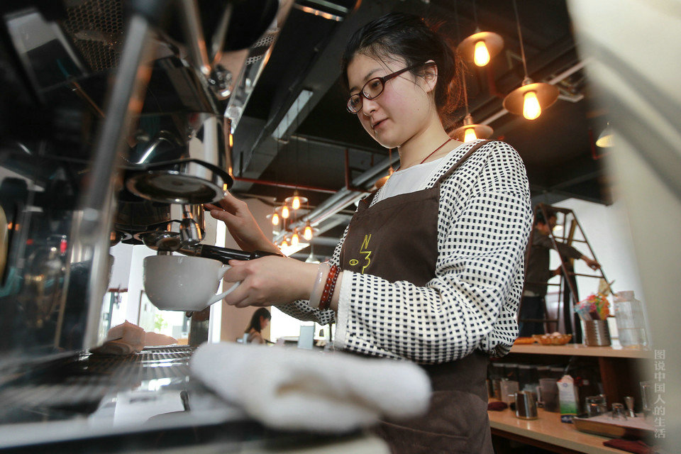 店员谢芸伊酷爱咖啡。从中国人民大学对外贸易专业毕业后,她没有选择留在北京,而是来到贵阳加入了创业咖啡吧的团队。