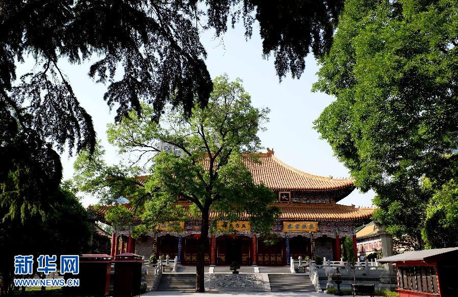 这是5月13日拍摄的西安大兴善寺内景。印度高僧善无畏、不空和金刚智曾在唐开元年间在这里译经授法。3人共计翻译佛经500余卷,使得大兴善寺成为唐代三大佛经翻译场所之一。在陕西西安这座古老的城市,许多具有印度风情的元素成为中印文化交流的最好见证。 新华社记者 刘潇摄