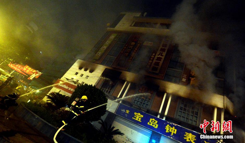 5月14日晚6点30分左右,福州市八一七路和古田交叉路口的华商楼发生火灾。记者7点15分左右到达起火现场时,路口烟雾迷漫,能见度较低;现场有多辆消防车,路口暂未进行交通管制,车辆仍可通行。起火建筑附近设有护栏,消防人员站在护栏旁阻挡行人靠近。起火建筑为华商楼,一楼门面有宝岛钟表、周大福等商铺,楼上有家具商场、快捷酒店等。据现场消防人员初步判断,火灾可能是由华商楼一楼电器失火引起的。消防部门当晚6点42分接到火警,随即出动7个消防中队,24部消防车赶赴现场灭火;当晚8点5分左右,火势基本扑灭,没有人员被困,未造成人员伤亡。刘可耕 摄