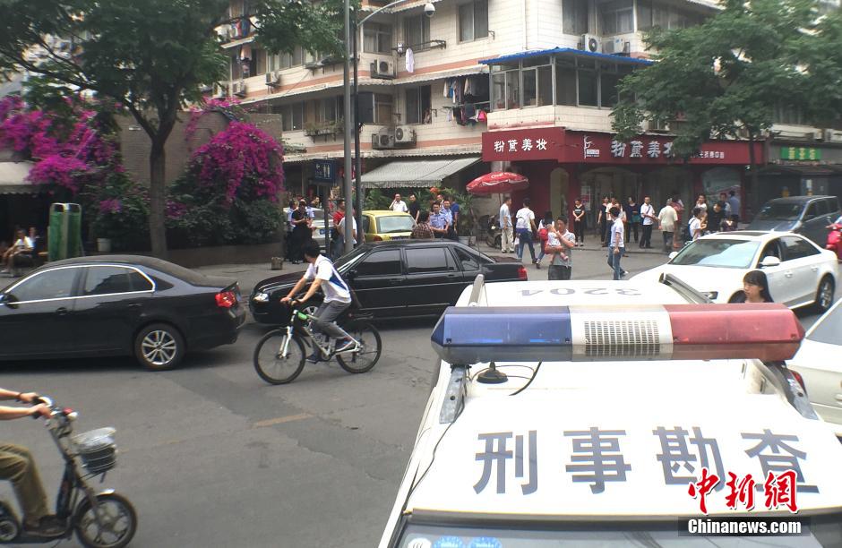 5月14日,事发现场位于城市闹事区,大批警察正在现场调查。当日下午3时30分左右,成都市中心城区下莲池街边“外滩”茶坊外路边茶座,发生一起枪击案,一名44岁男子头部中弹。目前,伤者正在医院抢救,成都警方正全力调查中。刘忠俊 摄