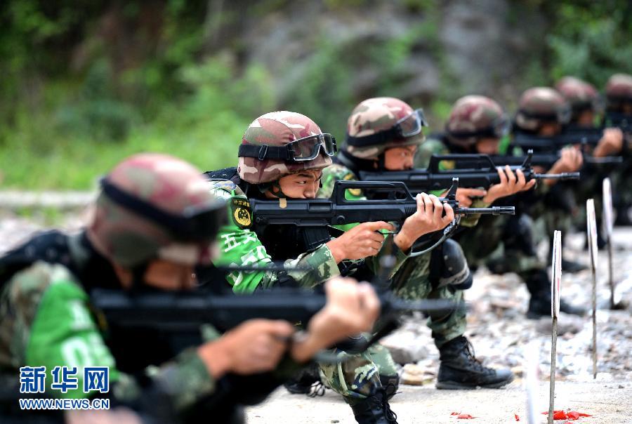 5月15日,特战队员进行步枪对不动目标快速精度射击竞赛。 5月12日至15日,武警重庆市总队在地处武陵山区的五支队举行特战排“神枪手”比武对抗竞赛。来自重庆市各地的近200名特战队员参加了28个课目的竞争角逐。据悉,此次比武对抗竞赛以处置突发性事件为背景,按照精兵精装精训要求,坚持“严难细实”从实战需要出发,提高特战队员遂行多样化任务能力。新华社发(曹峰 摄)