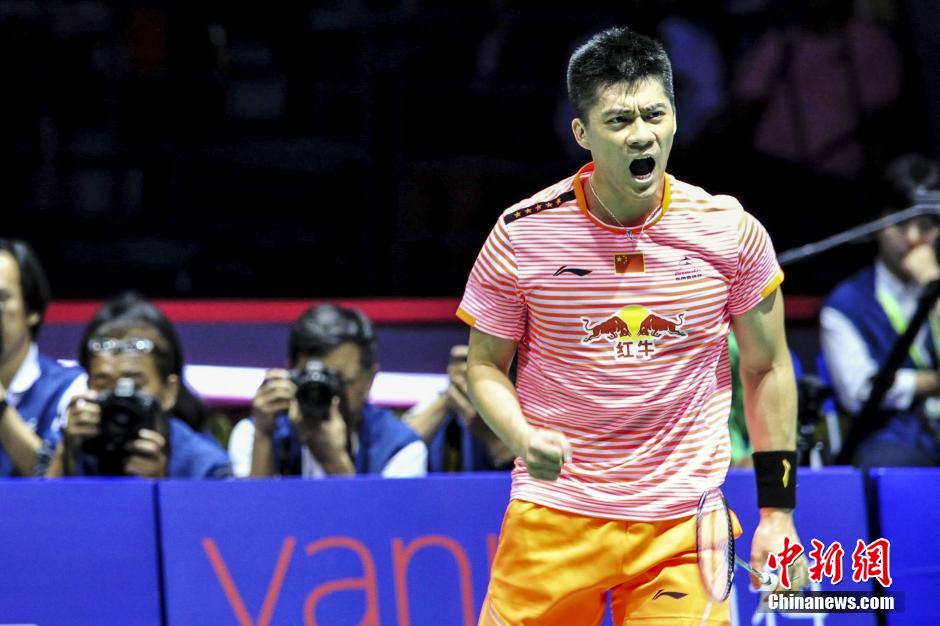5月17日, 中国队选手张楠/傅海峰在男双比赛中以2比1战胜日本队选手远藤大由/早川贤一,为中国队先下一城。当日,2015苏迪曼杯世界羽毛球混合团体锦标赛决赛在广东东莞市篮球中心举行,中国队对阵日本队。 中新社发 韩海丹 摄