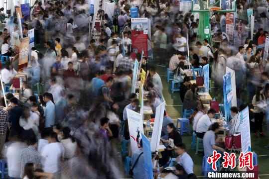 大批周边高校的大学生前来寻找合适的实习岗位。 泱波 摄