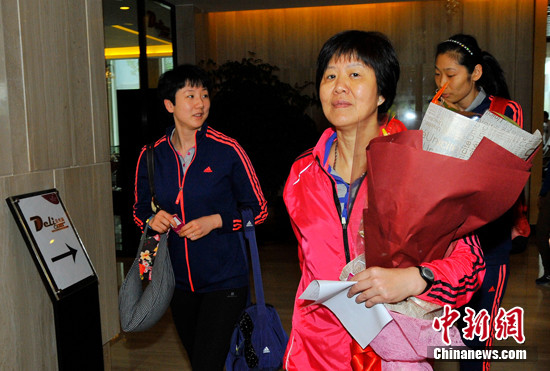 5月17日,2015亚洲女排锦标赛即将开战,中国女排队员抵达天津全力备战,对于这次亚锦赛,主帅郎平谨慎谦和的表示,目标是争取前三。 中新社发 佟郁 摄