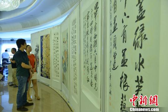 清莲世界书画展展出的作品吸引观众。 张浪 摄