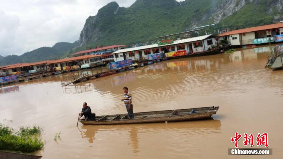 5月16日上午,桂江洪峰来临前,广西平乐县桂江上著名的“水上鱼村”停止营业,人员转移。由于连日暴雨不断,16日9时桂江洪峰水位达101.83米,超过警戒水位2.83米,流量7270立方米每秒。桂江河水上涨,导致平乐县城部分地段因排水受阻造成内涝受淹,全县大范围农田受淹,公路受淹、塌方,交通中断。该县立即启动“防汛三级响应”机制,动员广大党员干部群众,全力投入抗洪抢险工作中。中新社发 陶彩忠 摄