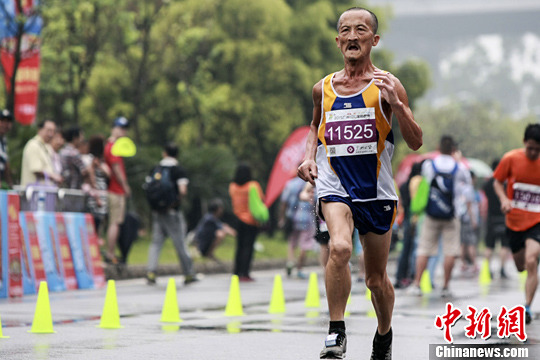 5月16日,2015广州10公里路跑赛在广州大学城鸣枪开跑,来自12个国家和地区,近6500名跑步爱好者在雨中参加了比赛。中新社发 黄晋文 摄