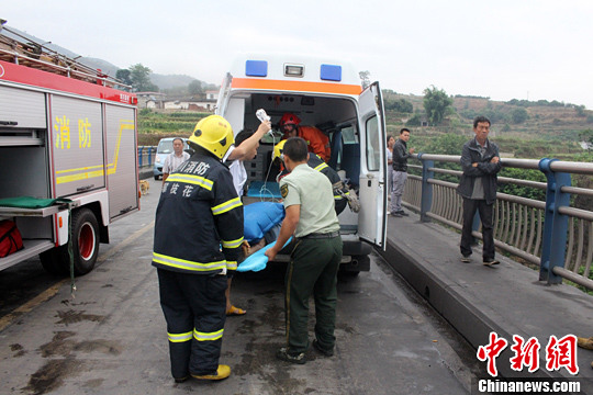 伤者被抬上救护车送往当地医院抢救。周海波 摄