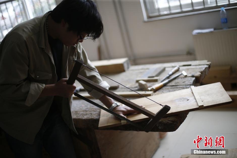 5月14日,一名学员正在学习故宫木作斗拱技艺。中新社发 张浩 摄