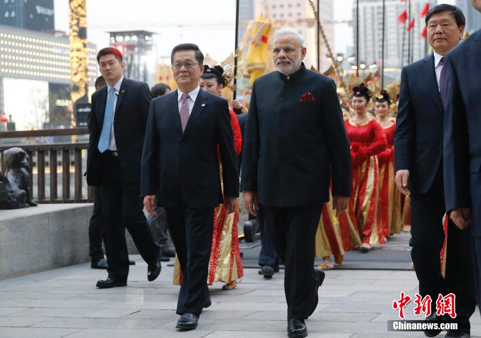 5月14日,西安举行仿古入城仪式,迎接印度总理莫迪。中新社发 杜洋 摄