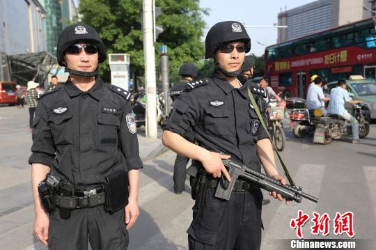 5月19日,郑州特警PTU巡逻队在街头武装巡逻。杨正华 摄