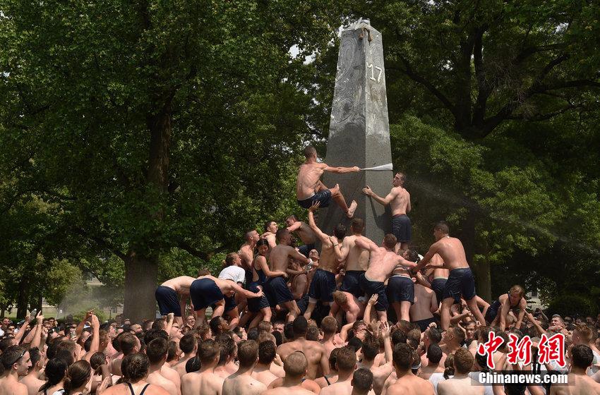 当地时间2015年5月18日,美国马里兰州安纳波利斯,安纳波利斯海军学院举办年度攀爬赫恩登纪念碑仪式
