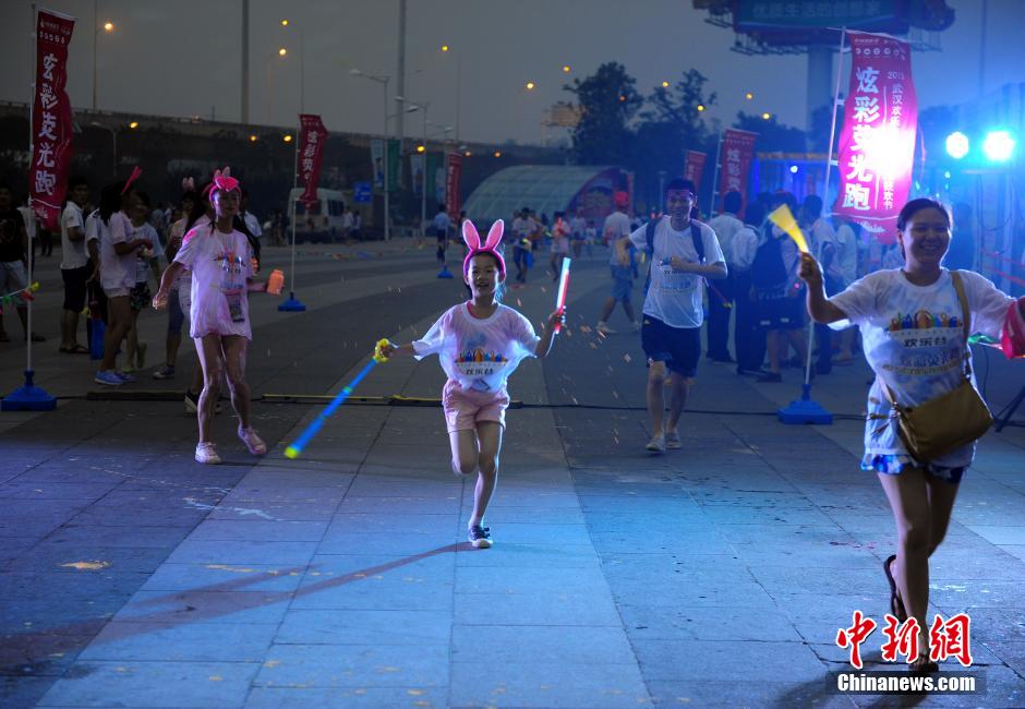 6月20日端午佳节,武汉千名美女帅哥手拿荧光水枪化身五彩缤纷的荧光跑者,在绚丽的灯光下,配合着强劲的音乐,随着人群的呼喊,穿越荧光隧道、泡泡地带,一起尽情享受运动的魅力。中新社发 张畅 摄
