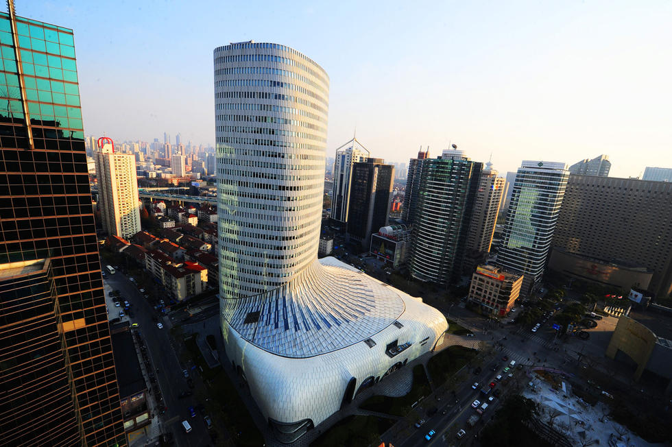 2013年12月27日,拍摄于上海市仙霞路遵义路交叉口,因设计外形酷似马靴被网友戏谑为“马靴楼”的“尚嘉中心”