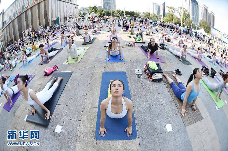 6月21日,数百名瑜伽爱好者在银川市街头练习瑜伽。当日是联合国设立的首个“国际瑜伽日”。 新华社记者 王鹏 摄