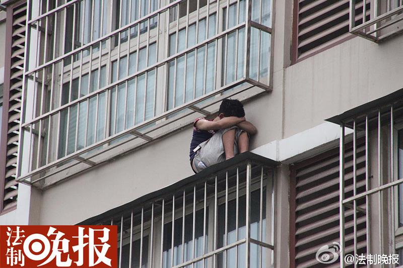 6月24日凌晨,北京市丰台区绿洲家园一名男子从居民楼8层钻窗入室、欲实施盗窃,结果被住户发现。这位住户将其逼困在楼外侧4层一住户的防盗窗上。在警方的合围下,双方僵持了7个多小时,男子终被擒获。法制晚报 崔毅飞 摄 图片来源:法制晚报官方微博