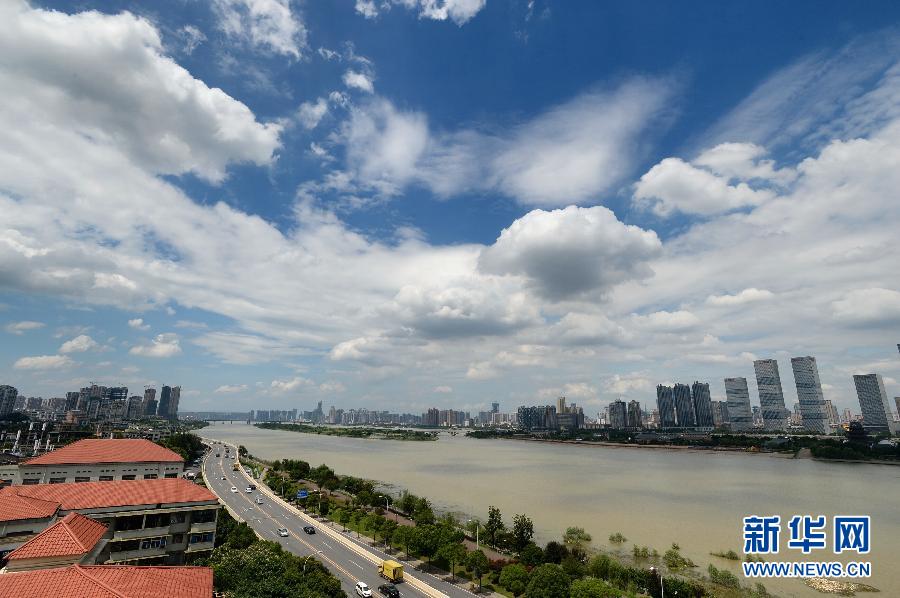 6月24日拍摄的长沙湘江沿岸主城区。当日,湖南省气象台发布2015年首个高温预警:24日至26日,湘中以南局地有35摄氏度以上高温。湖南省气象台预报,未来一周湖南省气温呈现上升趋势,特别是27日至29日,省内还将出现大范围35摄氏度以上的高温天气,提醒人们注意防暑降温。新华社记者 龙弘涛 摄