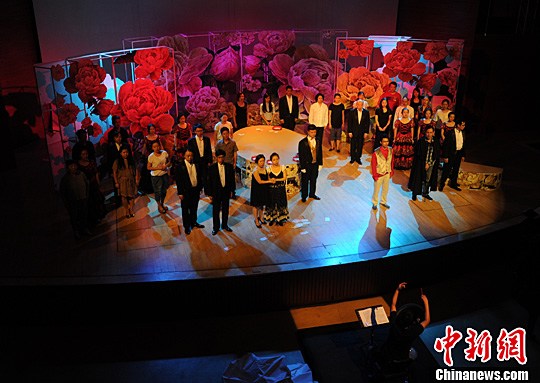 6月24日,首部“重庆造”全文原版外文歌剧《茶花女》正在紧张排练。中新社发 周毅 摄