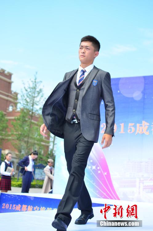 图为学校学生共同展示国际范校服。 毛成山 摄