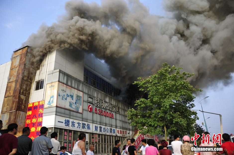 2015年6月27日清晨,山东省烟台市福山区永安街一家具城发生火灾,现场浓烟滚滚。据现场目击者称,当日4时30分左右该家具城二楼开始着火,并迅速向三楼蔓延,当地政府闻讯后迅速组织消防等部门展开救援。目前,火势已得到控制,没有人员伤亡报告,火灾原因相关部门正在调查中。据悉,该家俱城是一栋三层建筑,总建筑面积约1万平方米。中新社发 仲雁铭 摄