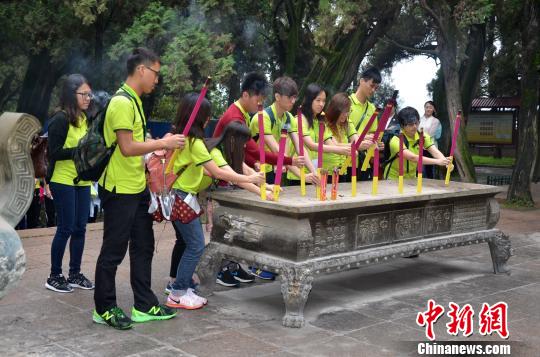 香港大学生向轩辕黄帝敬香。 李磊 摄