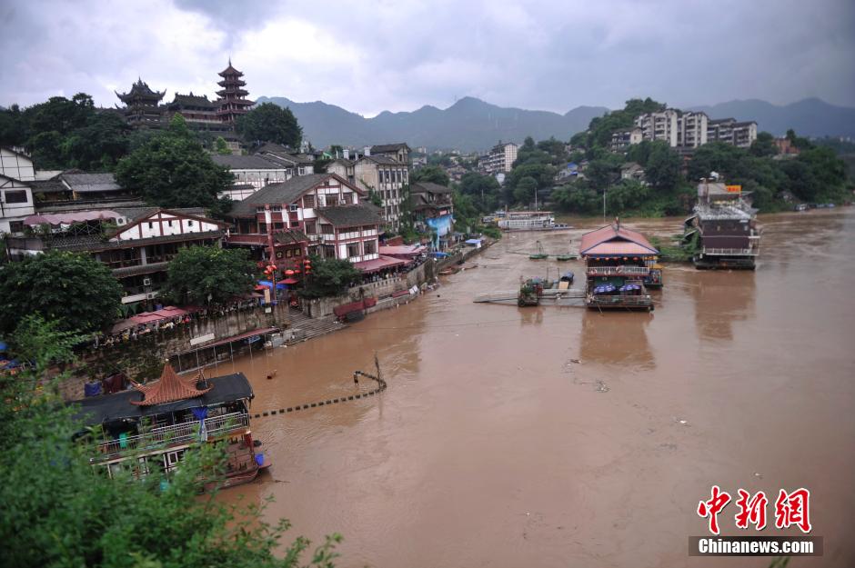 6月30日,嘉陵江重庆段再次迎来洪峰,千年古镇磁器口不少临江商铺都被淹没。为保证游客安全,周边已经拉起了警戒线禁止游客通行。陈超 摄