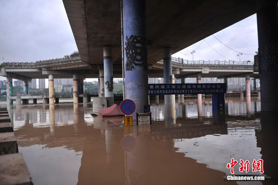 嘉陵江重庆段迎洪峰 磁器口临江商铺被淹没