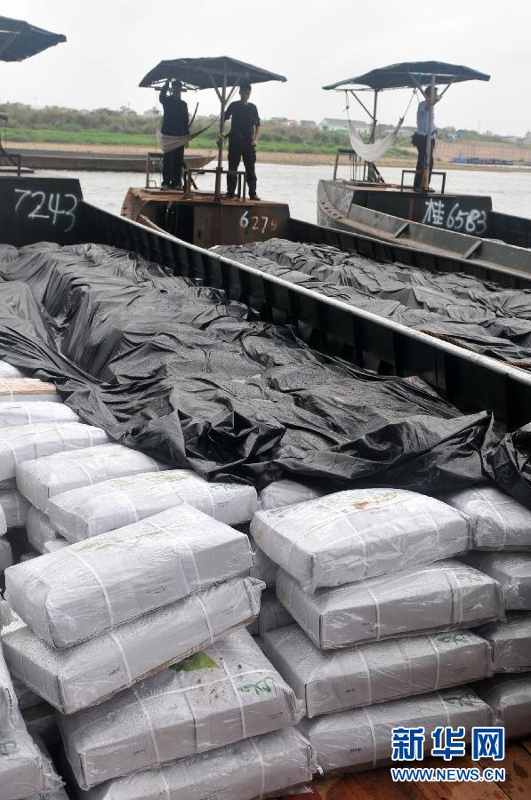 中越边境北仑河上,满载走私冻品的铁壳船被海关等部门查获(3月31日摄)。新华社发