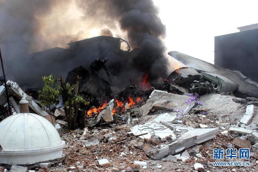 6月30日,在印度尼西亚北苏门答腊省棉兰,运输机坠毁后起火。一架印尼军用运输机当天在印尼苏门答腊省首府棉兰市中心坠毁,目前已造成至少30人死亡。 新华社发(金廷摄)