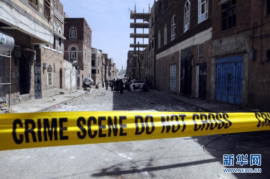 6月30日,在也门首都萨那,发生炸弹袭击的区域拉起了警戒线。