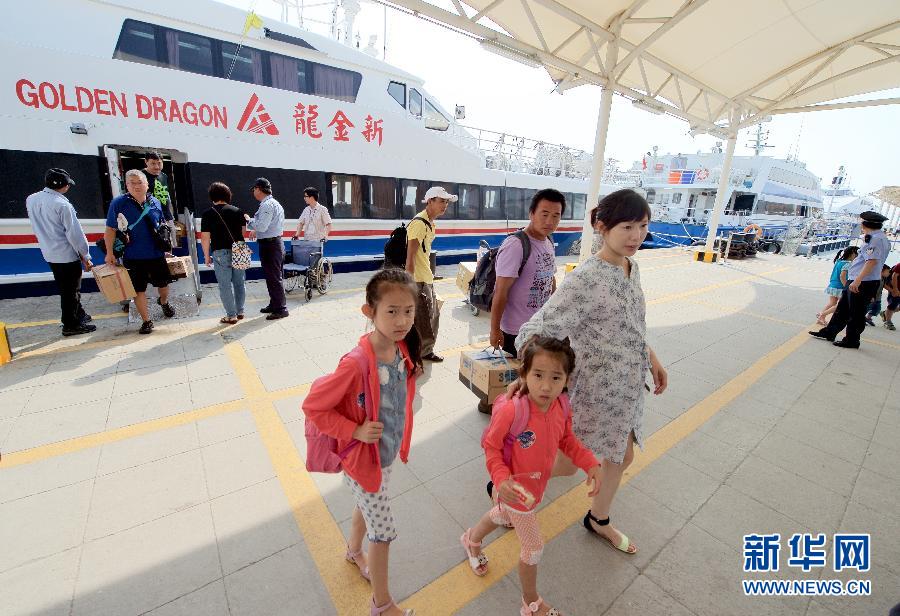7月1日,两岸旅客搭乘“新金龙号”客轮抵达厦金航线厦门五通码头。为进一步简化台胞来往大陆入出境手续,根据修改后的《中国公民往来台湾地区管理办法》,自7月1日起,台胞来往大陆免予签注,台胞持有效台湾居民来往大陆通行证(简称台胞证)即可经开放口岸来往大陆并在大陆停居留,无需办理签注。新华社记者 姜克红 摄