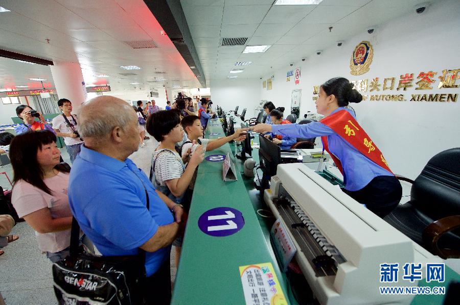 7月1日,台湾居民在厦金航线厦门五通码头出入境大厅内办理一次入出境有效台胞证。为进一步简化台胞来往大陆入出境手续,根据修改后的《中国公民往来台湾地区管理办法》,自7月1日起,台胞来往大陆免予签注,台胞持有效台湾居民来往大陆通行证(简称台胞证)即可经开放口岸来往大陆并在大陆停居留,无需办理签注。新华社记者 姜克红 摄