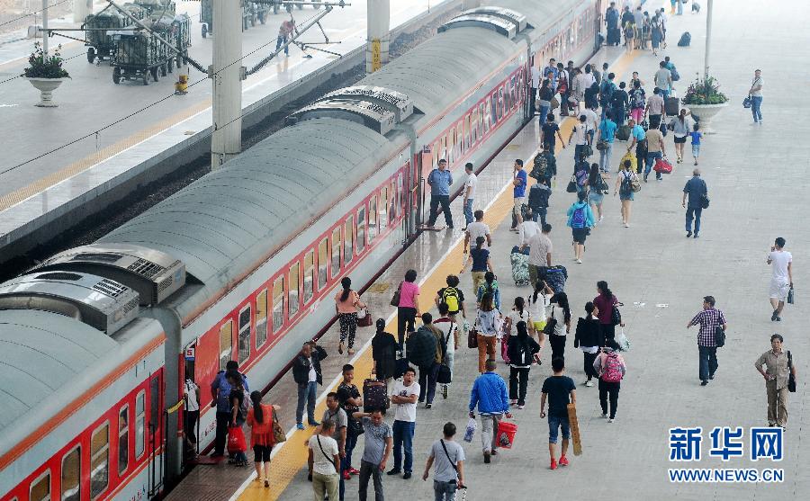 6月30日,乘客在石家庄火车站进站上车。据中国铁路总公司消息,自7月1日零时起,全国铁路将实行新的列车运行图。全国铁路增开旅客列车60.5对,其中,增开动车组列车53对。运行图调整后,全国铁路开行旅客列车总数达到2447对,其中,动车组列车1330对。新华社记者 朱旭东 摄