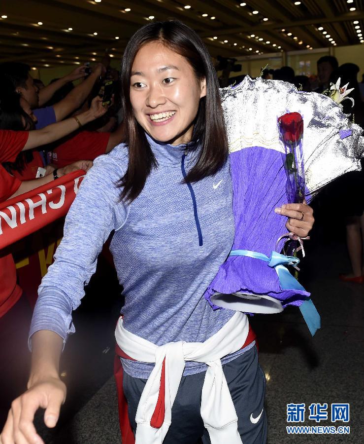 6月29日,中国队球员吴海燕走出机场。当日,中国女足结束2015世界杯征程,以八强身份返回北京。 新华社记者公磊摄