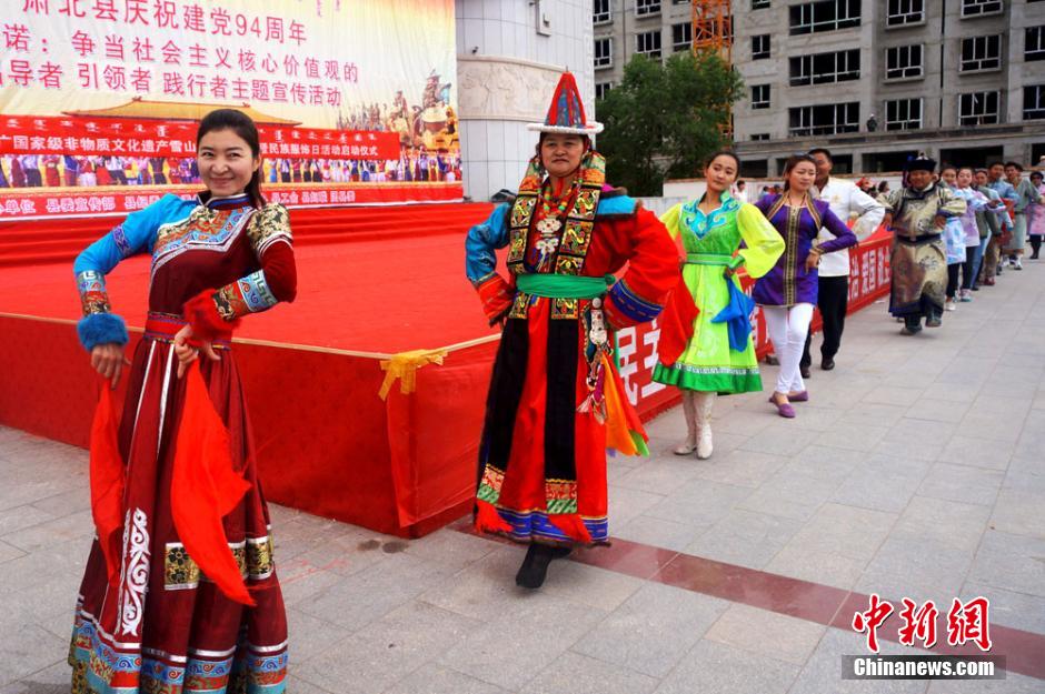 甘肃肃北“民族服饰日” 民众展示华美服饰