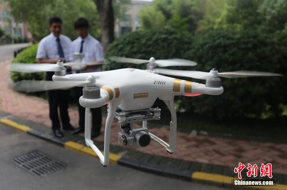 7月1日,河南郑州,一家小区物业公司保安正在操作无人航拍机对小区进行空中巡逻。这个位于郑州市迎宾路上的小区引进郑州首个社区物业“无人机”,吸引小区居民看稀罕。 杨正华 摄