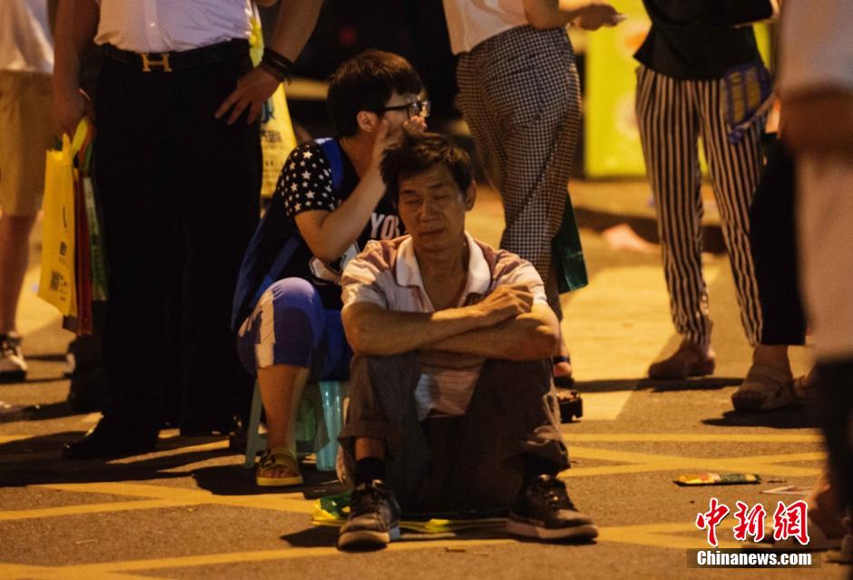 一位家长蹲坐在地上睡着了。杨华峰 摄